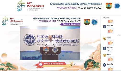 中国地质大学(武汉)校长王焰新院士、国际水文地质学家协会(IAH)主席David Kreamer教授、联合国教科文组织政府间水文计划(UNESCO IHP)主席余钟波教授、国家自然科学基金委副主任侯增谦院士等领导和专家在现场和线上出席了开幕式,近万人在线观看开幕式全球直播。本届大会主题为“地下水可持续性与消除贫困”,大会围绕全球变化与地下水循环、地下水水质与人类健康等16个专题开展深入交流和研讨。