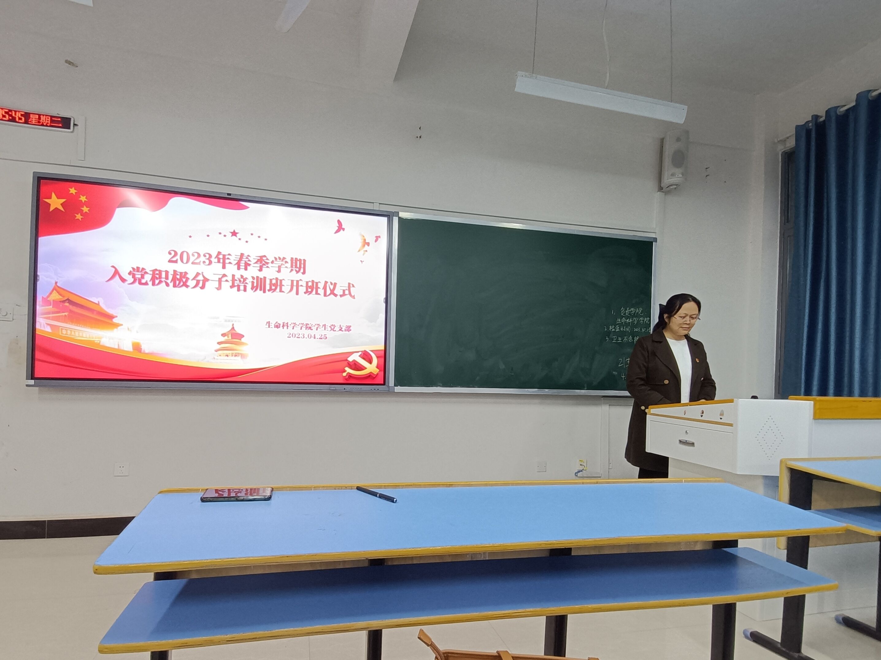 为全面学习贯彻习近平新时代中国特色社会主义思想和党的二十大精神,扎实做好党员教育培训工作,进一步提高党员发展质量,我院于4月25日晚上举行开班仪式。本次开班仪式由学生党支部书记任梦雅主持,学院党委副书记何旭梅出席,22级辅导员肖虹以及57名入党积极分子参加。