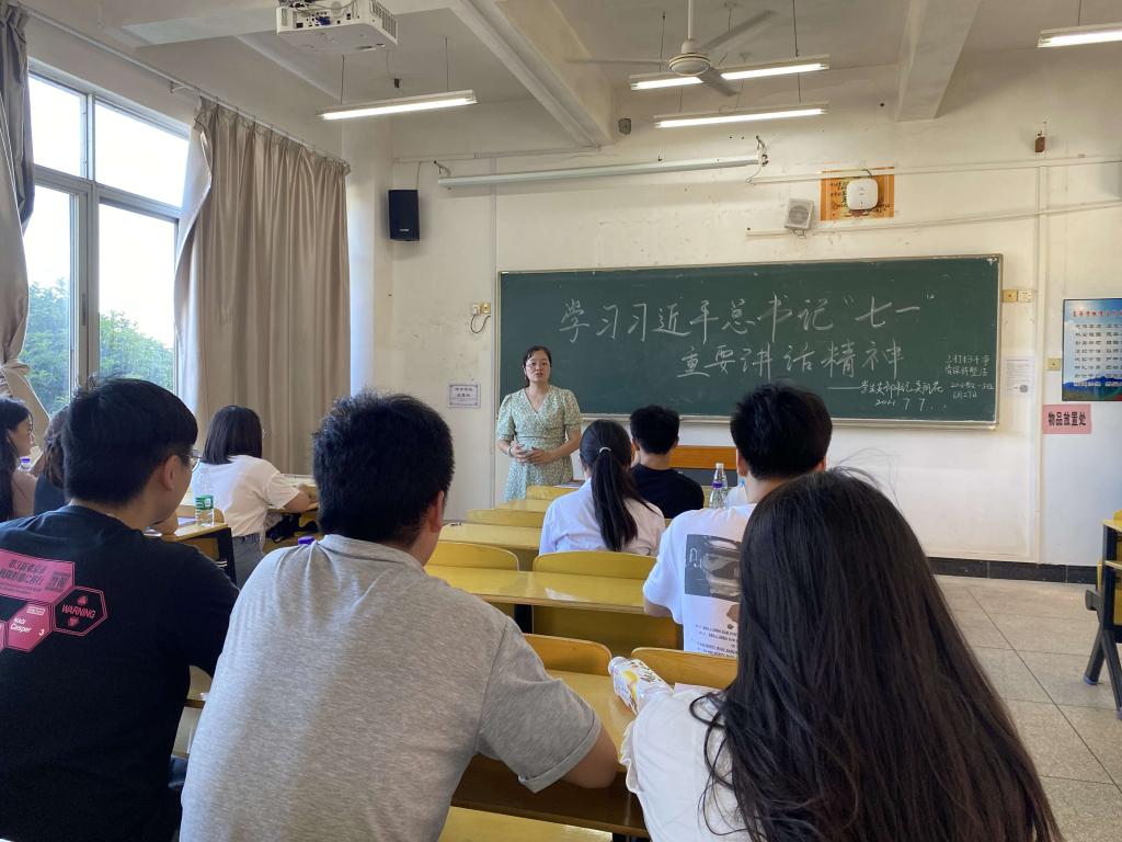 7月7日下午,生命科学学院学生党支部在5栋107举行专题党课学习活动,活动由支部书记吴丽花主持,就习近平总书记在中国共产党成立100周年大会上的重要讲话进行了解读,带领支部所有在校党员共同学习了该重要讲话。