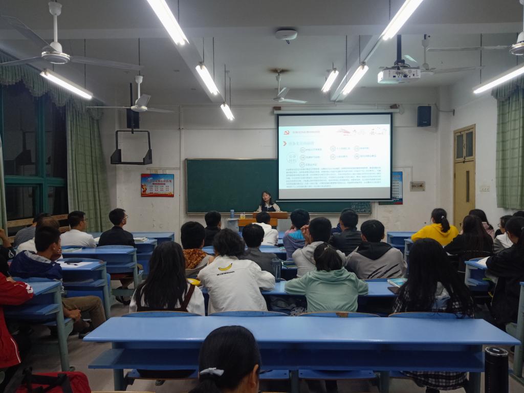 为增进我院学生对党的认识和理解,让我院学生清楚如何成为一个合格的共产党员,我院于10月25日晚在九栋106、405和501开展了三堂党课宣讲。本次党课宣讲分别是预备党员张欢、车涵静、倪若荑、雷艺涵主讲的以“学习党识,铭记责任,以实际行动争取早日入党”为主题的党课宣讲;预备党员黄义倩和舒怡主讲的以“不忘初心,牢记使命”为主题的党课宣讲;预备党员刘洁和黄琳主讲的以“把握新方位,开启新征程,如何成为一个合格的共产党员”为主题的党课宣讲。参与此次宣讲的是19级全体同学。