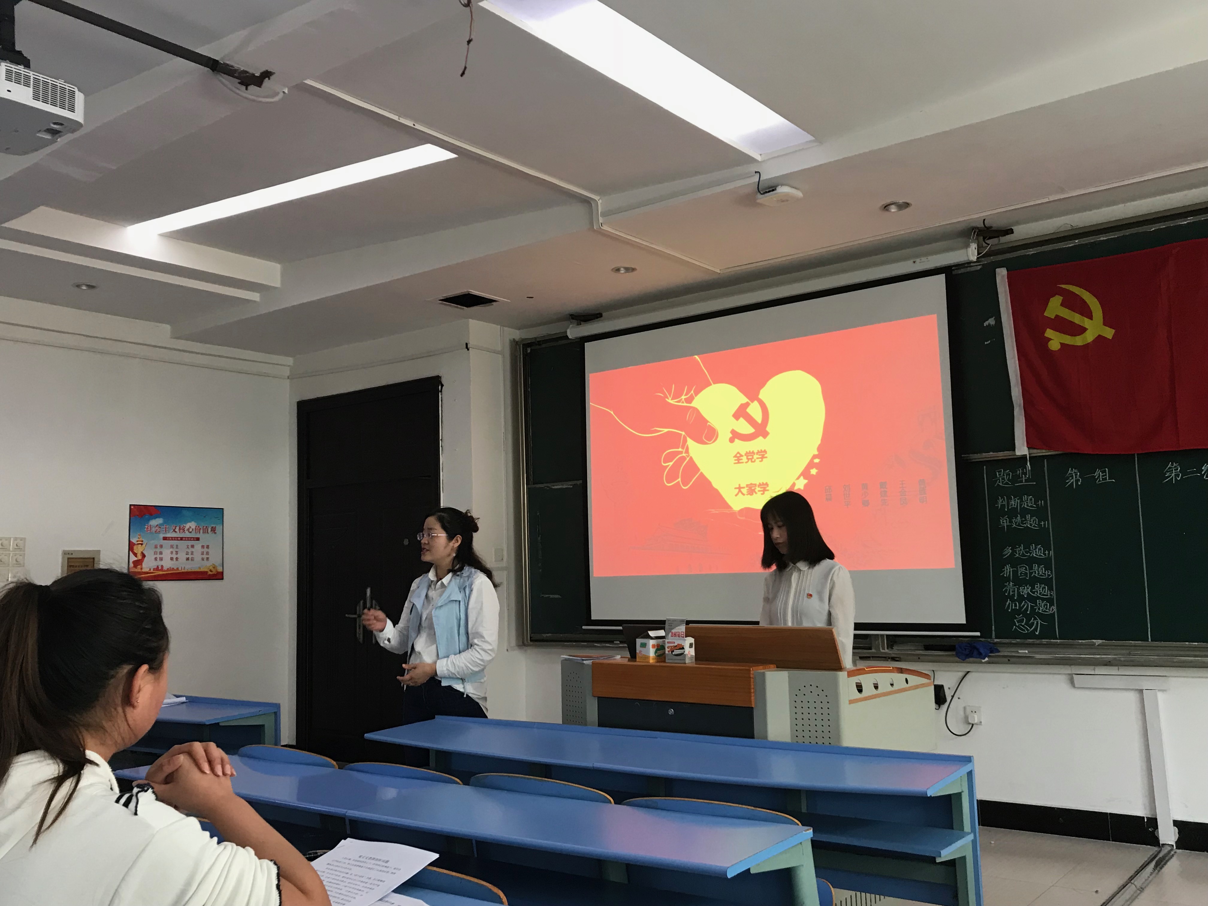 为深入贯彻落实党的十九大和省委十四届六次、七次全会精神,落实“学习强国”学习平台学习要求,3月21日下午,学院全体学生党员和积极分子共计40余人在9栋208开展了“全党学,大家学”党的知识竞赛主题党日活动。