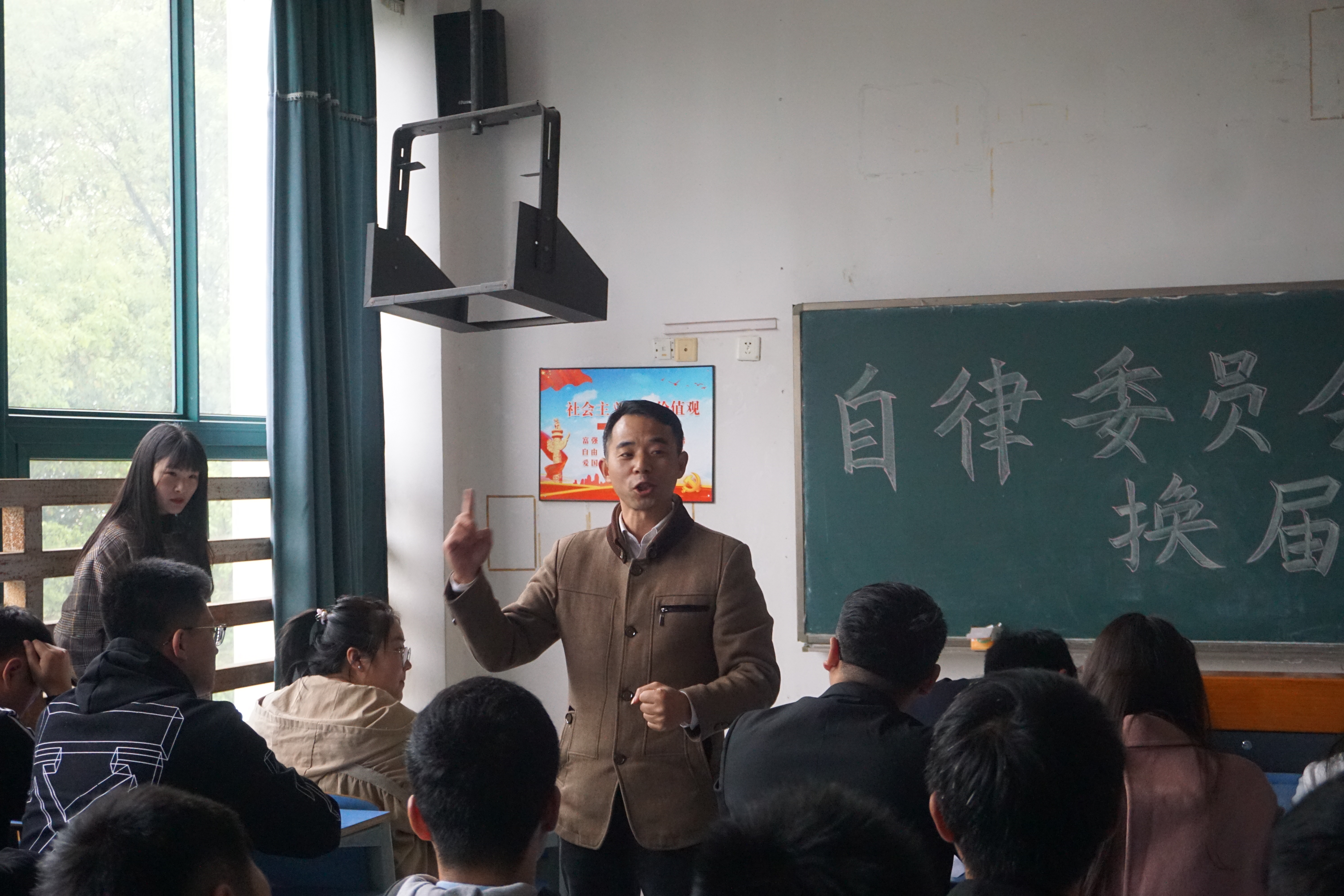 3月24日下午,生命科学学院第十三届自律委员会换届大会在9栋201室顺利举行。学生科朱焕明老师、团委学生会主席团代表汪学滨、全体自律委员会干部以及各班班长六十余人参加会议。