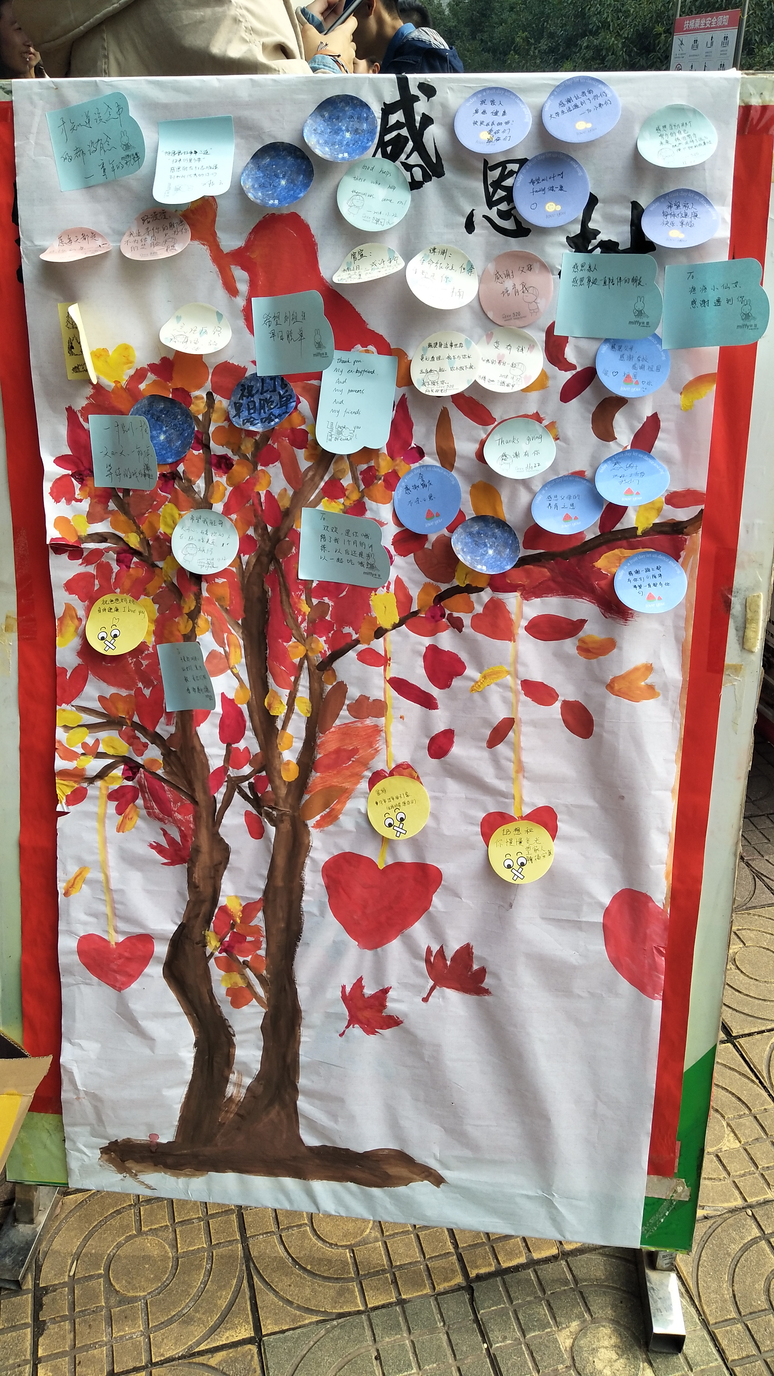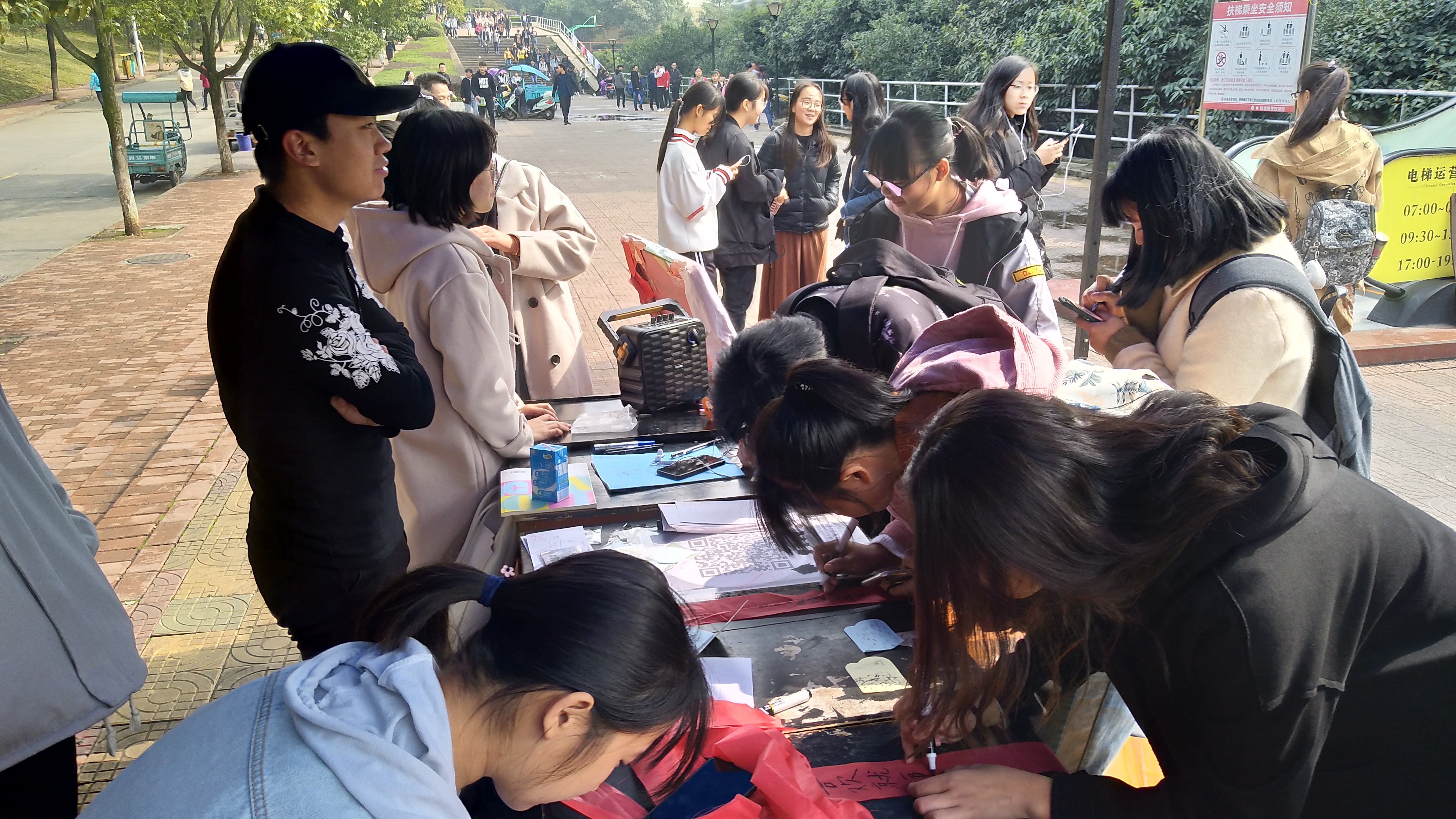 本次活动形式多样,同学们可以在横幅上签上自己的名字,可以在红丝带上写上祝福的话,也可以在便利贴上表达对他人的感谢。活动现场十分热闹,来参加的同学很多,一张张便利贴上是他们对父母的感谢,对朋友的祝福,对过去的怀念,对未来的憧憬。一条条红丝带上写下了他们对生活的热爱,横幅上写满的名字是他们对自己的鼓励。现场一张张动人的笑脸组成了最美的一道风景。