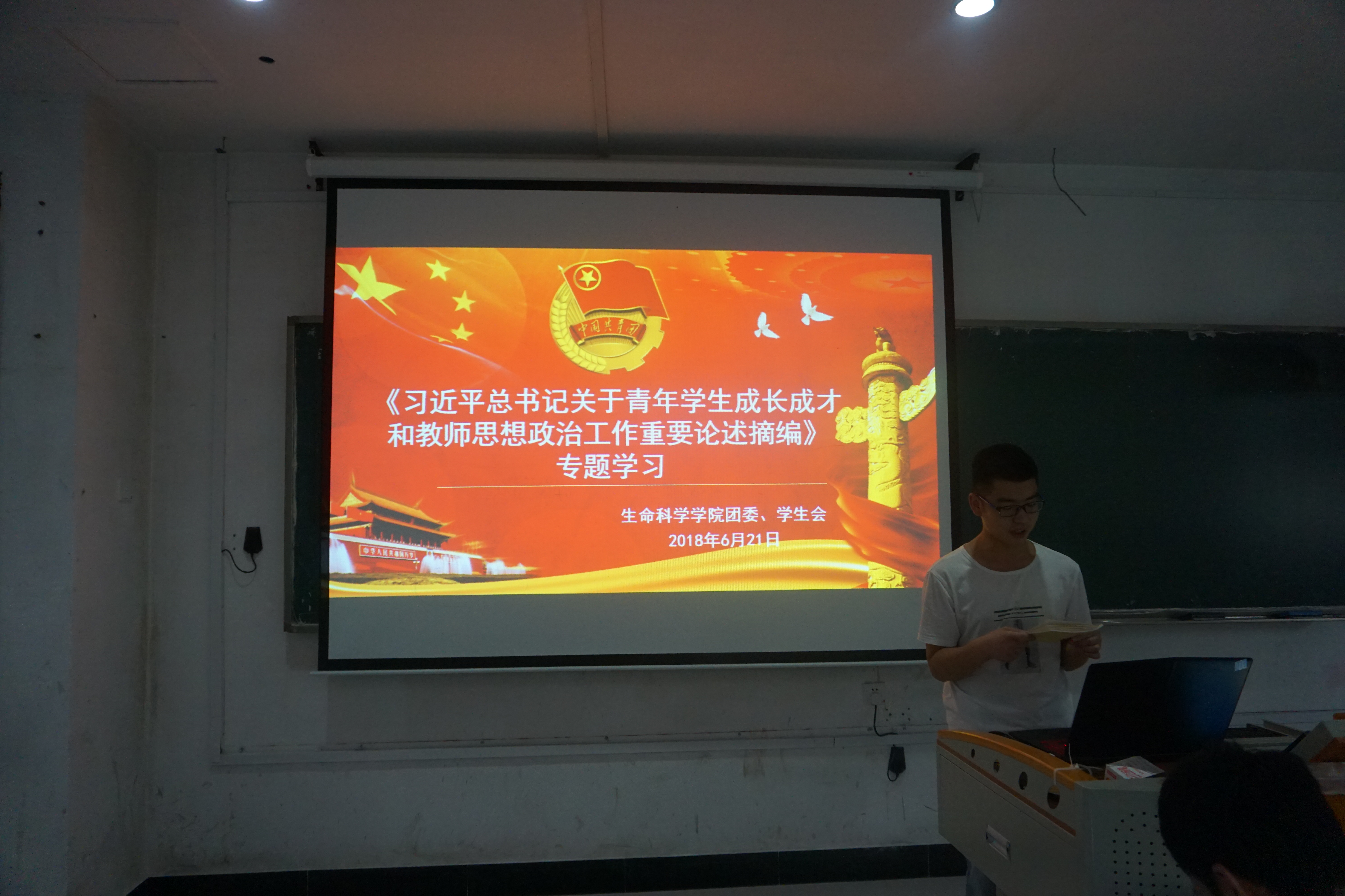 为进一步学习宣传贯彻党的十九大精神和习近平总书记关于青年学生成长成才重要思想,着力培养担当民族复兴大任的时代新人,6月21日午时,学院团委组织全体院干在9栋107教室学习《习近平总书记关于青年学生成长成才和教师思想政治工作重要论述摘编》一书。此次学习活动由学院学生团委副书记武笑飞主持,团委、学生会全体干部共计60余人参会。