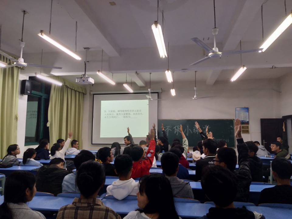 为响应团中央、生态环境部要求,进一步动员社会各界力量参与到我省生态文明试验区建设中,11月4日晚,学院团委社会实践部爱心社于九栋106教室开展了“美丽中国,我是行动者”环保知识微课堂活动。社会实践部爱心社助理朱丽云主讲,团委社会实践部全体成员以及18级的部分学生共计80余人参加。