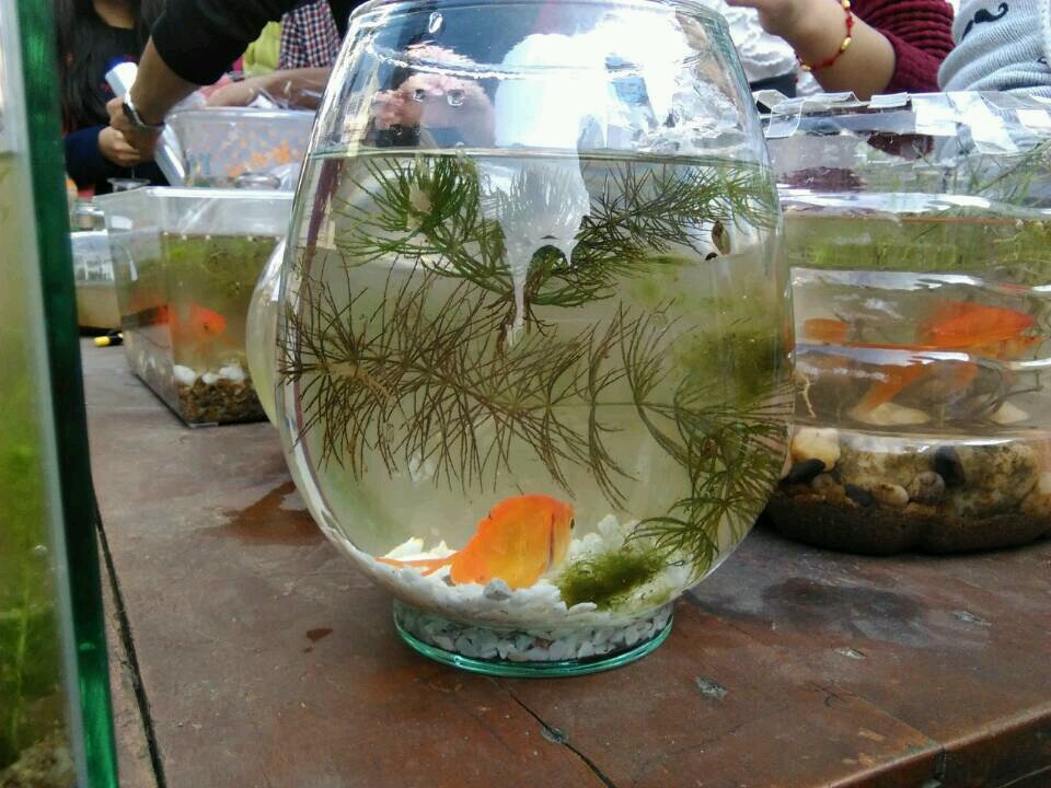 在明媚的阳光照耀下,同学们环绕着圆盘,仅用泥沙、石子、水、鱼、瓶子等材料就创造出一个个创意十足、美观大方的迷你生态缸。脸上虽淌着汗水,但选手非常投入,因为活动带给他们更多的是与伙伴制作生态缸时的欢声笑语和创造的喜悦。比赛结果将在半月后根据生态缸水质、小鱼存活状态、水中生物种类、生态缸创意等方面评出。