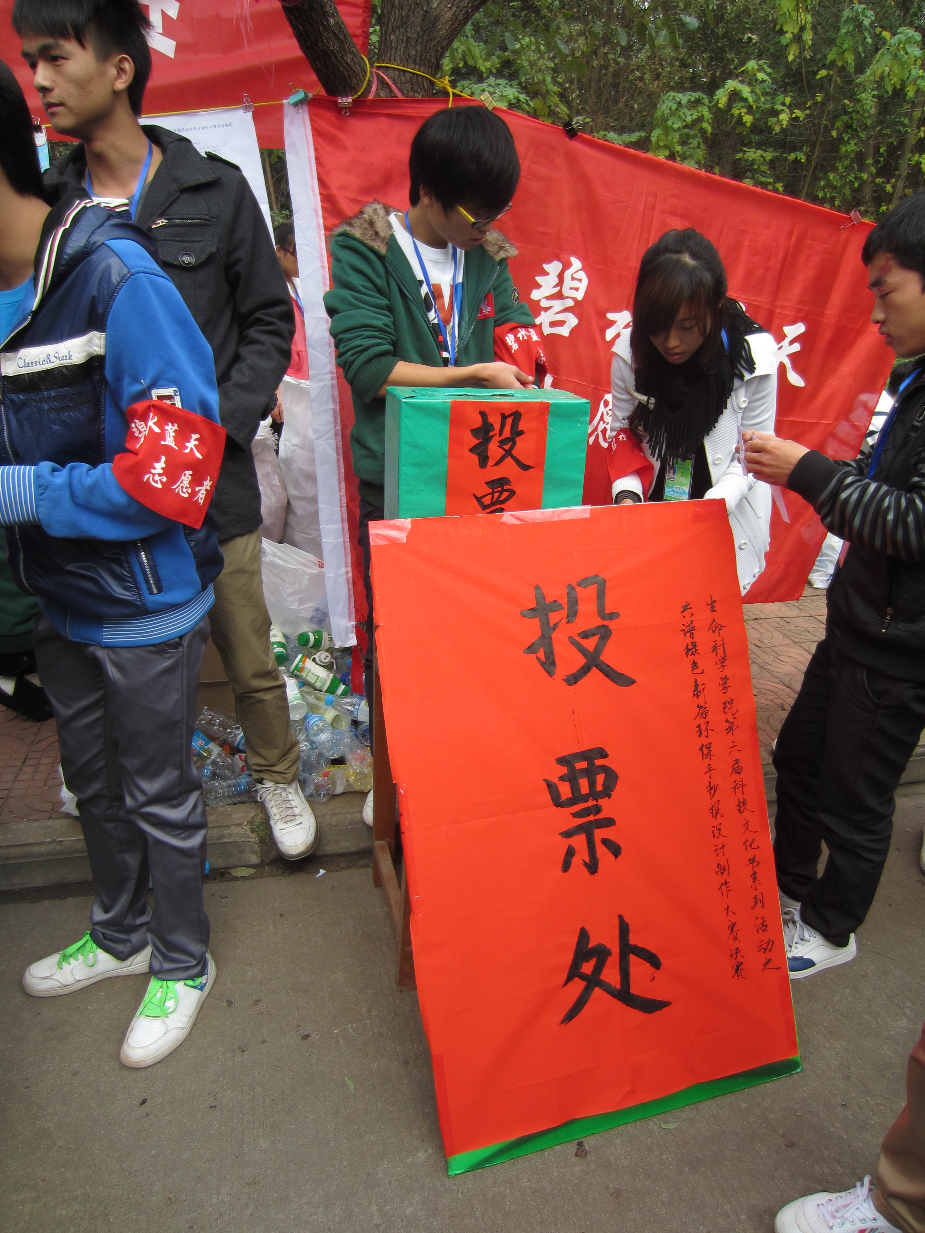 该活动于11月21日启动,各学院同学纷纷响应,广大同学积极参与,纷纷前来报名,手抄报以环保为主题,追求原创,突出特色。设计作品可以个人单独完成,也可多人合作完成。截止到12月1日共有100多幅作品交上,囊括了8个学院,参赛人数高达300余人。经过初赛评比,20份作品从中脱颖而出。12月4日决赛以观众投票的方式在第一学生食堂前进行。为了更能体现环保主题,主办方特别制定了评比规则即一个矿泉水瓶换取一张“助力环保”爱心签,一张爱心签可以为心仪的作品投上一票。同学们热情高涨纷纷收集塑料瓶来为自己心仪的作品投票。整个投票过程有近800名同学参与其中,投票一直持续到下午1点结束,一个小时收到来自全校师生共3400多张的公开投票。