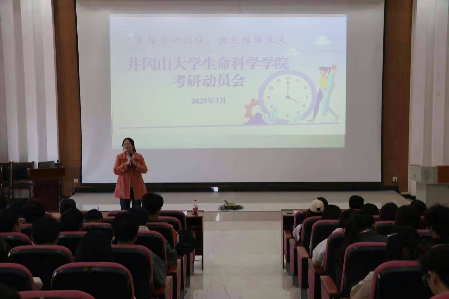 为激励考研学生的备考信心、激发考研斗志、鼓舞考研士气,生命科学学院于3月20日在21栋306开展2026届考研动员大会,会议由学院党委副书记何旭梅主持,学院院长贺根和、副院长肖小雨出席,近200名考研学子参加。