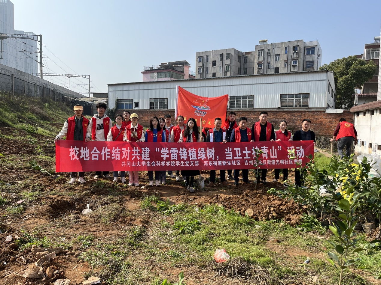 为全面贯彻落实党的二十大精神,发挥党支部的战斗堡垒作用,促进校地共同发展,在第45个全民义务植树节到来之际,3月10日上午,我院辅导员肖虹带领学生党员与新生社区党支部在铁路沿线开展“学雷锋植绿树,当卫士守青山”植树活动,并应邀参观了新生社区的活动室。