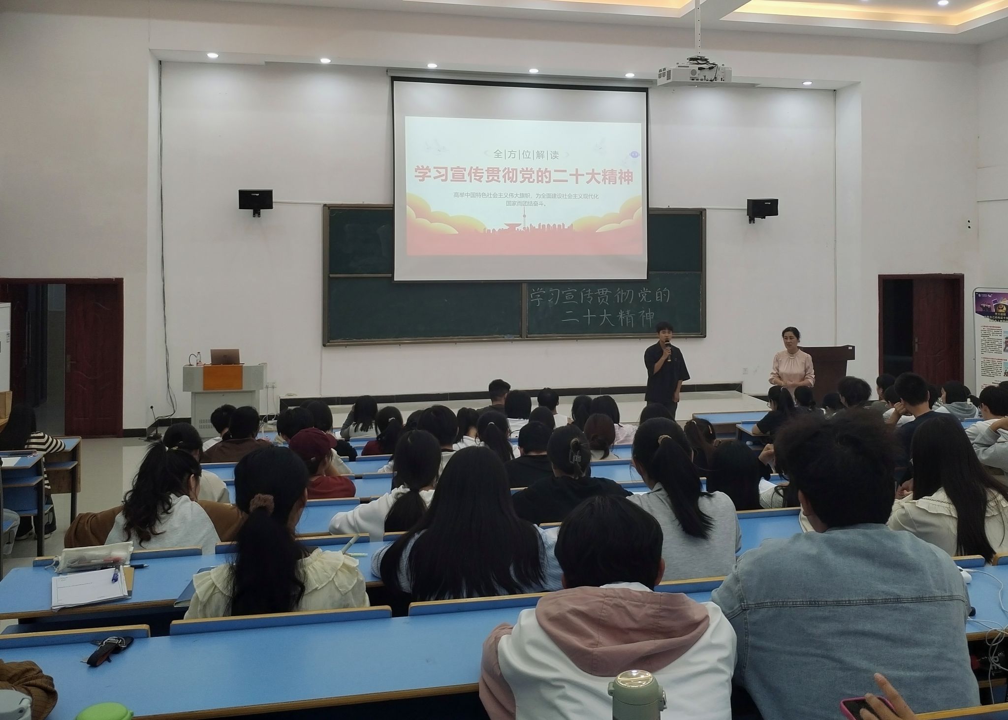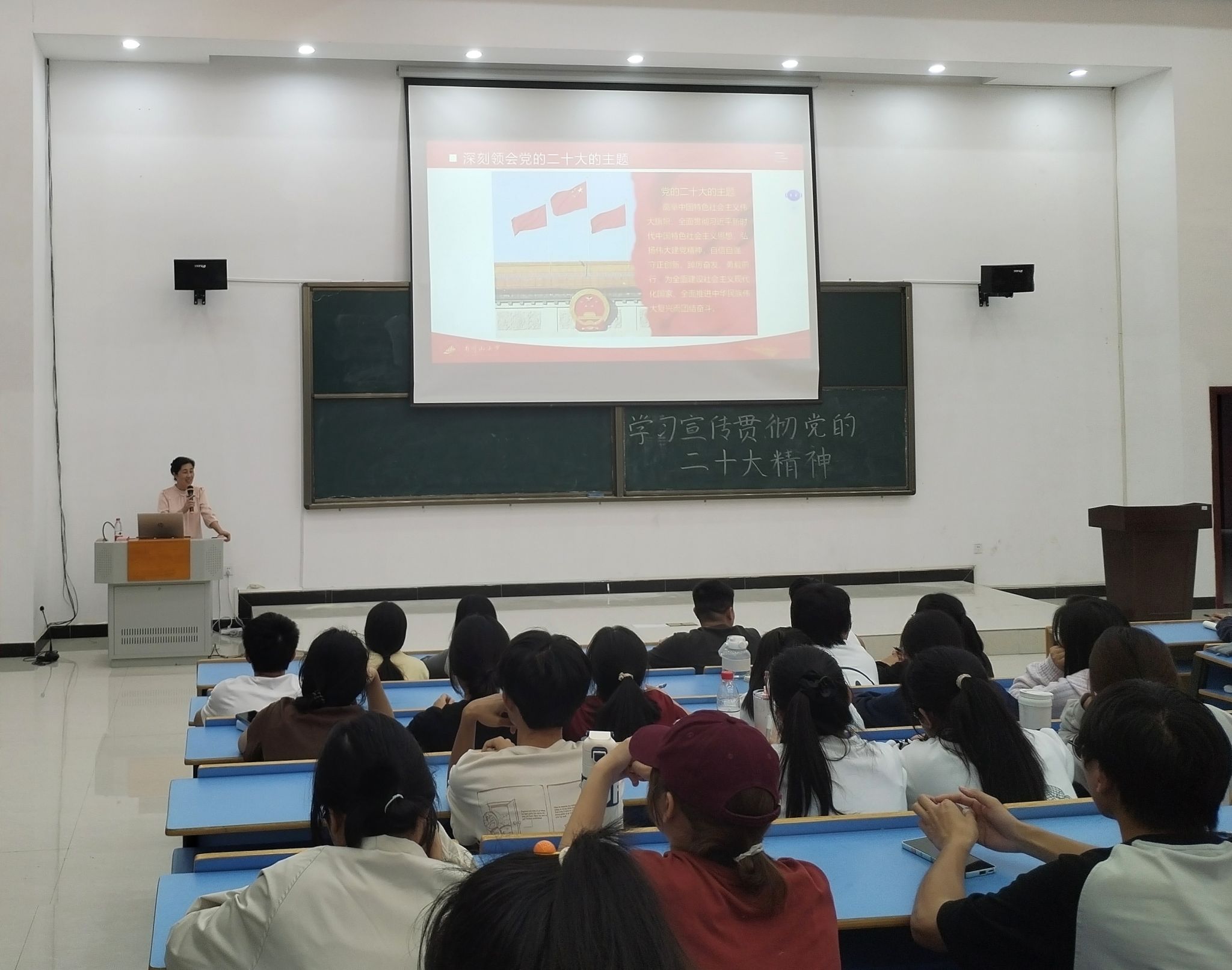 为认真学习贯彻习近平新时代中国特色社会主义思想、党的二十大精神,提高学生的理论素质,端正入党动机,10月25日晚上,学院党委书记彭青在21栋106讲授专题党课,学院大骨班学员、学生入党积极分子、发展对象、学生党员参加。